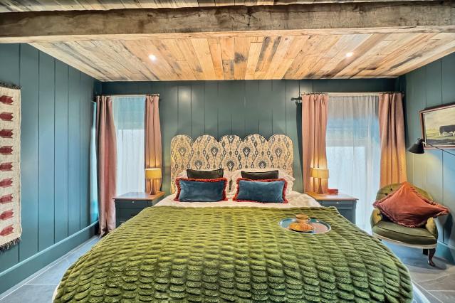 Buttercup Cottage is a beautifully converted one-bedroom barn conversion hideaway on Exmoor, blending rustic charm with modern luxury. Once part of a working dairy barn, it now offers a warm and stylish escape surrounded by peaceful countryside views. Sleeps up to 2 guests One super king-size bed Luxury bathroom with copper freestanding bath and rainfall shower Open-plan living area with deep green country kitchen Wood-burning stove for heating and cooking (logs included) Smart TV in both the bedroom and living area Private outdoor area overlooking a pond with koi carp Wi-Fi, heating and electricity included Parking on site Dogs welcome, with treats and a cosy bed provided Arrive from 5 pm Depart by 10 am Step inside to find a beautifully designed open-plan space where earthy tones and natural textures create a calming atmosphere. The country kitchen is well equipped for home cooking, while the wood burner adds a touch of rustic charm. The luxurious bathroom invites relaxation with its copper bath and rainfall shower. The bedroom features a super king-size bed and Smart TV for quiet nights in. Outside, enjoy tranquil views across the pond and surrounding Exmoor hills — perfect for lazy mornings or evening drinks as the sun sets. Buttercup Cottage is a romantic and photogenic retreat, offering thoughtful touches and indulgent comfort in the heart of Exmoor.
