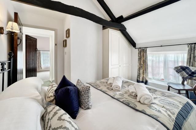 Draped in vibrant Virginia creeper, Grooms Cottage is a beautifully converted Grade II-listed retreat for up to four guests. Upstairs you’ll find a master double bedroom and a twin, with a shower room conveniently placed between them. Downstairs offers a spacious open-plan sitting and dining area, alongside a separate kitchen. Outside, a private seating area overlooks the main courtyard – an inviting spot for summer BBQs or a little stargazing. Sleeps up to 4 guests One double bedroom and one twin room on the first floor Upstairs shower room Large separate kitchen with full size upright fridge freezer. Outside seating area overlooking main courtyard (not enclosed) Shared outdoor swimming pool (heated May to mid-September - available for cold water swimming the rest of the year) Large shared gardens with Kadai fire-pit, swing set, picnic bench and large chess set. Dogs welcome (2 max) for £20 supplement per dog Wifi, heating and electricity included. Bed linen and towels provided. Complimentary "green" toiletries. Travel cot and high chair available on request Arrive from 4 pm Depart by 10 am Grooms Cottage is equidistant to the medieval village of Dunster and the coastal town of Minehead, approx 1 mile to each. There are four self-catering holiday cottages on the same site, which all enjoy shared use of the outdoor heated swimming pool (May to September), with its own walled area and poolside furniture, plus an acre of magnificent sub tropical gardens and 3-acre paddock offering views over the West Somerset Steam Railway and across the Bristol Channel to the Welsh coast. Guests are encouraged to interact with the animals which include Shetland ponies, sheep and goats. A refundable security deposit of £150 is required for this property, to cover the cost of possible damage during your stay. All things being well, this security deposit will be returned shortly after your departure providing there is no damage to the property or its contents. Two weeks prior to your arrival, you will need to contact the owners to arrange payment of the security deposit.